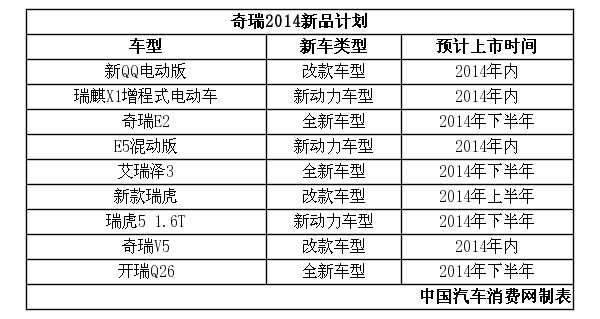 奇瑞汽车曾一度站在国内自主品牌销量的金字塔顶端,但近年来已经被长城、吉利等车企陆续赶上。细究其中原委,品牌战略的失误首当其冲,不过,经过几年的调整,奇瑞终于重新回归“一个品牌”,随着品牌战略转换的同时,奇瑞的产品战略也开始随之改变。继2013年推出了新QQ、E3、艾瑞泽7和瑞虎5四款全新产品之后,2014年,奇瑞仍将在新车上继续发力,以加快完善其产品线布局。详情见下文。