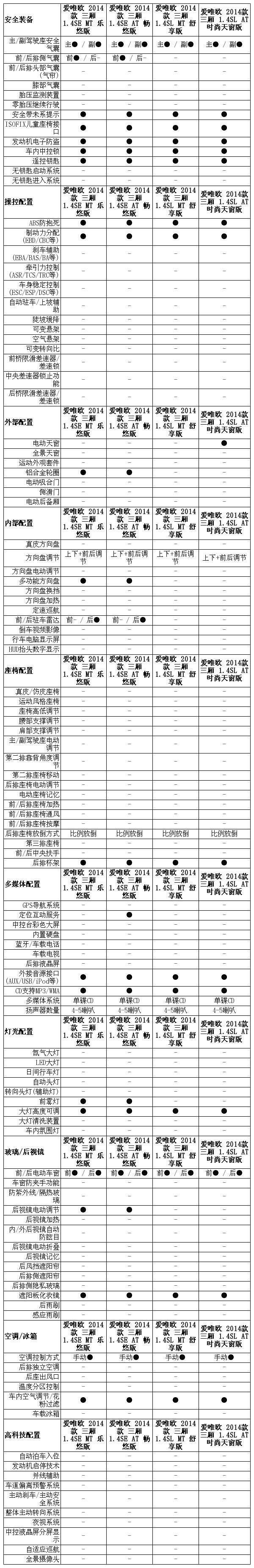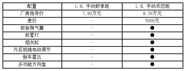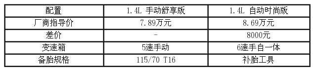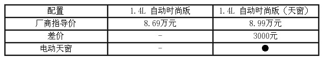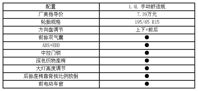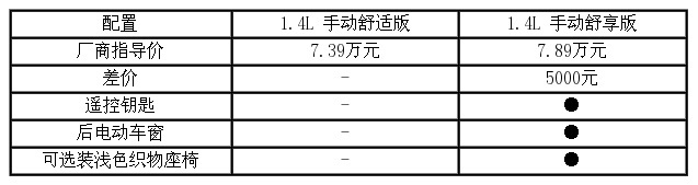 推荐车型:1.4L 手动舒适版/1.4L 自动时尚版/1.4L 自动时尚版(天窗)