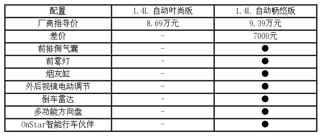 推荐理由:这两款车在性价比方面的表现还是相当突出的,不仅安全配置更加全面,舒适性配置也给我们日常使用带来了更多的方便。自动畅悠版相比手动乐悠版,增加了一万元,不仅更换了6速手自一体变速箱,还增加了安吉星系统,虽然没有中控台显示屏,但依然可以通过语音导航,使用起来也非常方便。