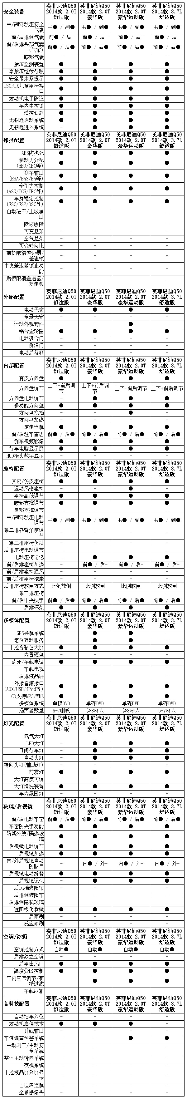 [汽车之家新车图解] 提到英菲尼迪,大家的第一感觉就是其运动化的品牌定位和优美流畅的车身造型。今天我们为大家带来的这辆英菲尼迪Q50是该车系售价最低的一款车,售价为32.58万元,它在舒适性配置和安全性配置方面有不错的表现。那这台最便宜的英菲尼迪车型还有什么吸引人的地方呢?看完我们这篇Q50 2.0T舒适版的解读文章,相信你一定会有属于自己的判断。