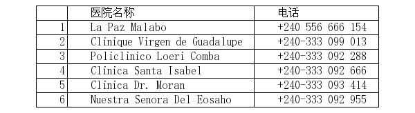 1、马拉博地区:中心医院,社会保险医院,瓜达卢佩医院。