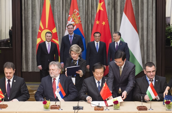 17日上午,中国、匈牙利、塞尔维亚、马其顿四国总理共同见证了合作建设中欧陆海快线北段匈塞铁路的谅解备忘录和通关便利化协议的签署,为中欧陆海快线的建设奠定了重要基础。