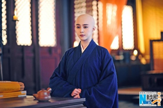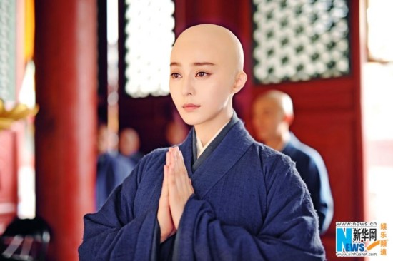 首次在电视剧中以光头造型示人的范冰冰不止一次对自己的光头造型充满自信和期待。早前,范冰冰曾通过修图的方式拍摄过一组近乎光头造型的时尚大片,野性十足。而范冰冰的御用造型师卜柯文曾透露“范冰冰以光头示人的想法至少有一年,但一直没有真的付诸实施。” 这次在《武媚娘传奇》中的光头剃度造型,不仅让范冰冰真正过了一把光头瘾,更在网络上掀起一轮“光头美女”的话题讨论。图片来源:新华网