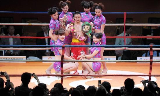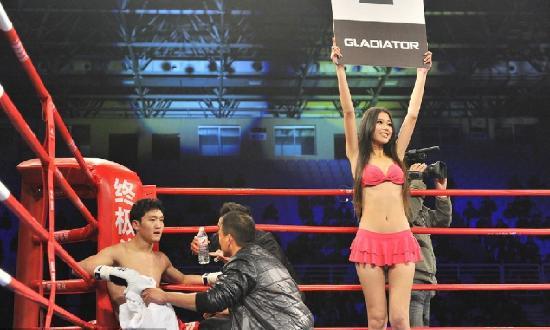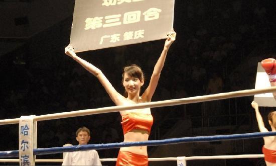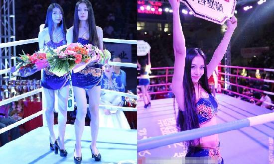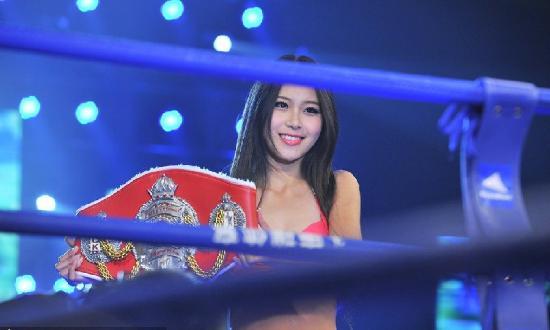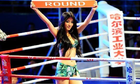 在搏击比赛中,男选手在擂台上血脉喷张的搏斗时,比赛期间和间歇期出现的举牌女郎也成为了赛事当中一道独特的风景线。