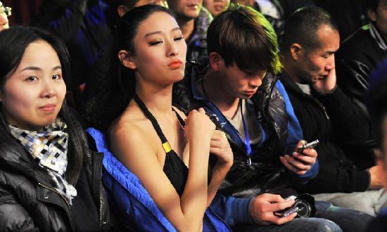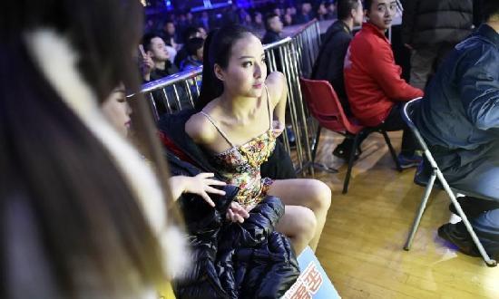 赛场之外,举牌女郎们对专业的比赛并不了解,大多也都在台下默默的欣赏着这项运动的激烈,如同一个普通看客。
