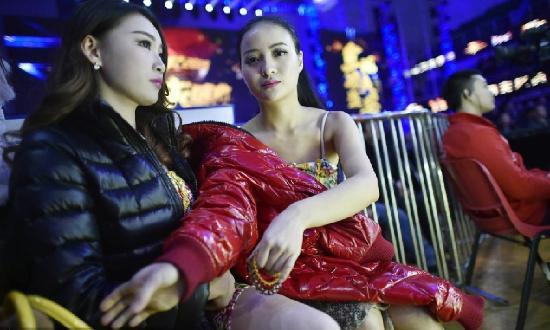 冬季时,比赛进行中,寒冬腊月穿旗袍走秀,贴暖宝宝也不管用。赛场下的举牌女郎迅速穿上棉服保暖。