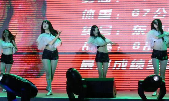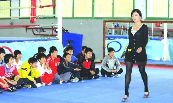许多赛事的举牌女郎也同样会进行选秀,从众多竞争者中层层选拔。图为2010年4月23日,参加某俱乐部拳击宝贝决赛的12名宝贝来到拳击馆,拳击宝贝们先参观运动员的训练,然后举行了模特走秀、才艺表演,由拳击队队员投票选出拳击联赛遵义站的举牌女郎。