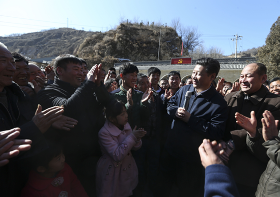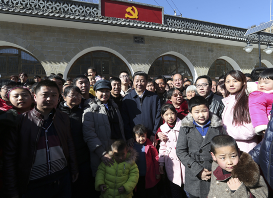 新华网延安2月13日电 2015年2月13日,农历乙未年春节前夕,中共中央总书记、国家主席、中央军委主席习近平来到陕西考察调研,向革命老区人民和全国各族人民祝贺新春。第一站,总书记到的是延安市延川县梁家河村。