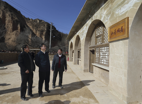 春回陕北,春阳明媚。远处沟梁上的积雪渐渐消融。梁家河村沿山而建,村民们的窑洞分布在黄土高原的沟壑之中。从村口到村里,总书记同乡亲们一起走着。