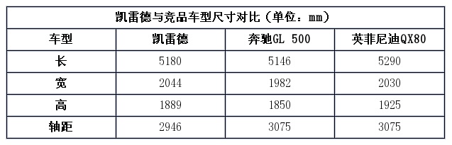 相比竞品车型,凯雷德在宽度占优,长度、高度和轴距都不敌英菲尼迪QX80,但如果你真对后排空间有需求,可以考虑一下更大一号的凯雷德ESV。它的长度增长至5697mm,轴距达到3302mm,绝对的VIP级。我们在拉斯维加斯街头看到的凯雷德主要都是ESV车型,这车流窜在赌场间的样子简直帅爆了。