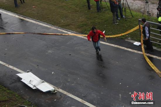 台湾复兴航空GE-235班机2月4日上午自台北松山机场起飞后于基隆河坠河。图为部分飞机碎片掉落在公路上。中新社发 路梅 摄