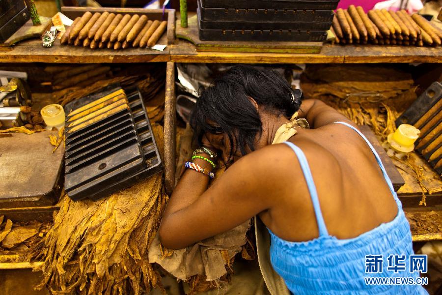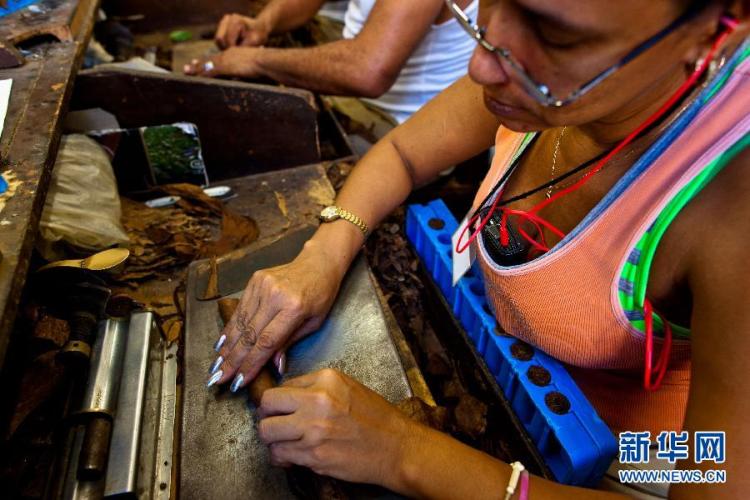 “燃灰白如雪,烟草卷如茄”,原产于美洲的这种特殊香烟经徐志摩译作“雪茄”而为中国人所熟知。古巴雪茄享誉全球,每年超过5亿只雪茄从这个岛国出口到世界各地。古巴雪茄因岛上特殊的土壤等自然条件和长期传承的发酵工艺,向来为全球“雪茄客”所热捧。古巴最好的雪茄均为手工卷制,烟厂工人每天需要制作约百只雪茄,经过多道工艺和筛选,最后装箱上市。随着古巴和美国去年年底启动关系正常化进程,古巴雪茄有望迎来新的商机。 新华社记者刘彬摄