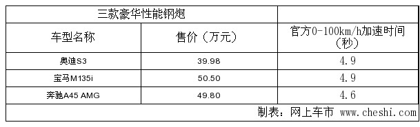 编者总结:这三款车型,0-100km/h加速都在5秒以内,而就编者而言,我更倾向于宝马M135i,首先3.0T排量更大,后期改装潜力相比两款2.0T更具吸引力。同时后轮驱动的乐趣相比两款四驱来的更随心所欲些,即便不改装,宝马M135i也显的更性能些。