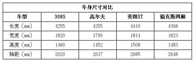 站在308S的旁边感觉这款车并不是特别小,不过对比车身尺寸会发现308S真心不算大,尤其是车身长度和轴距,在同级别车型里算是比较小的。