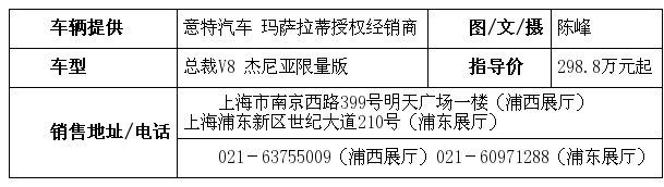 在外观轮廓上,总裁杰尼亚限量版与普通版并无太大的区别,而一眼能感觉出不同的是车身颜色上,或许经过专属处理的漆面会一下子吸引您的注意力,当然,还有B柱上不是很显眼的杰尼亚专属标识,不张扬却自有声,有着名牌男装的袖扣那般不凡点缀。