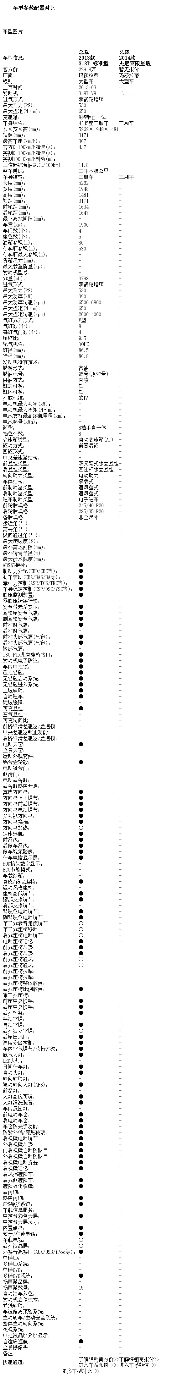 杰尼亚限量版在维持现有特性和品质的基础上进一步强化其专属性。所以配置方面变化不大,同样配备了玛莎拉蒂触控屏、可调节踏板(只针对左座驾驶车型)、倒车摄像头和可供选装的带有15个扬声器的Bowers & Wilkins音响系统,以及基于WLAN技术的WiFi功能和可兼容大多数智能手机的通讯系统。