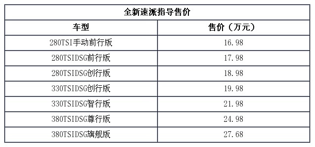 全新速派提供3种排量7款车型,售价16.98万元-27.68万元,起售价格比老款车型有小幅提升,顶配车型的价格比老款高出不少,那具体情况是什么样呢,下面我带您一款一款去分析。