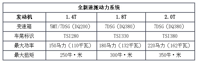 全新速派依旧提供1.4T、1.8T、2.0T三款发动机,但这三款发动机均为全新产品,这里我主要想说下变速箱,虽然都是7速双离合但它们并不一样,1.4T车型使用的是代号为DQ200的干式双离合变速箱,而1.8T和2.0T车型则使用代号为DQ380的7速湿式双离合变速箱,论稳定性还是湿式更好一些。