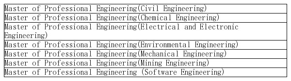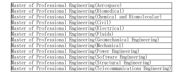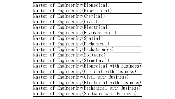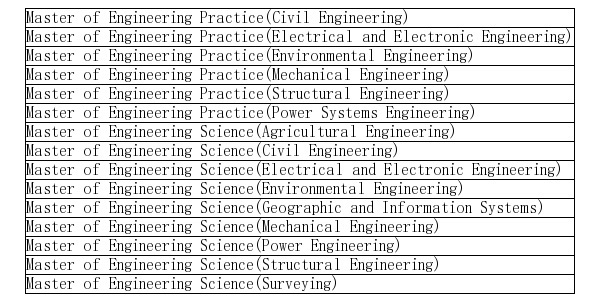 2015年澳洲工程师协会EA认证工程硕士专业全名单