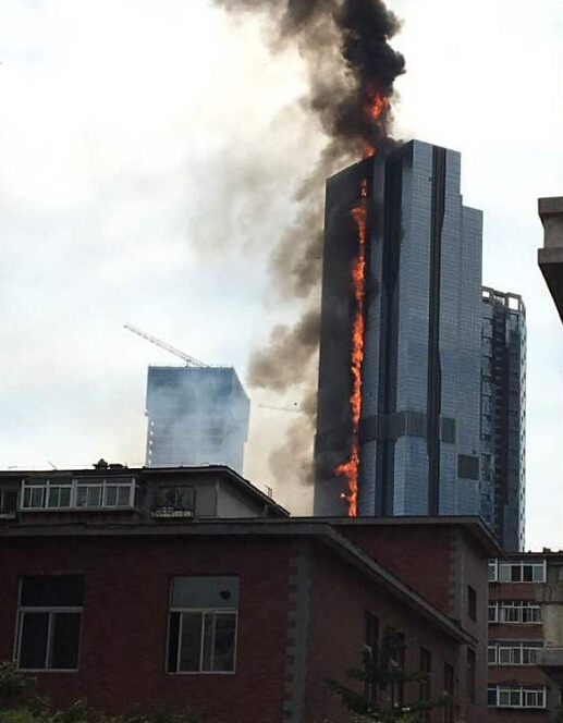 昨日,位于沈阳市青年大街与中山路交会处的裕景中心一栋总高170米的50层超高住宅楼起火,所幸无人员伤亡。