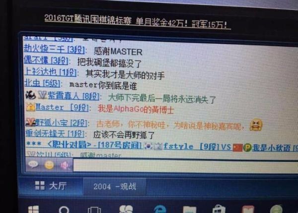 横扫中日韩棋手斩获59胜的Master发话:我是阿尔法狗。Magist选择的对弈规则是20秒读秒的超快棋,可以3次超时,很主流的网棋比赛节奏。Magist迎战的都是带P标志的职业棋手,先是轻松战胜“满汉”,接着是“燕归来”,然后“圣人”和“卧虎”和“无痕”,差不多都是二三十分钟一盘。Magist无论执黑还是执白,都显得游刃有余。当时的围观群众恐怕不多,也不知道Magist的来历。但他车轮大战各位职业高手,显然出手不凡。