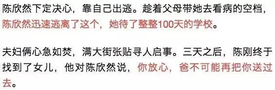 没过多久,陈欣然被父亲带来的教官强行接走,从大庆开往济南的途中,陈欣然试图逃跑,但被教官抓回。