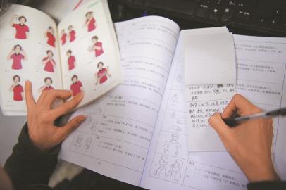 “伸出右手食指,指向对方,然后收回食指,竖起大拇指,这是手语‘你好’的意思。”1月1日,29岁的山东姑娘杜银玲用手语向成都一家银行的员工问好,并指导他们进行手语节目的编排。