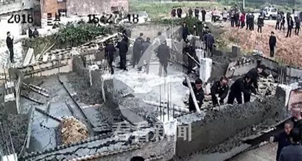 徐家被拆的在建房,位于江西省抚州市资溪县鹤城镇泸声村。监控视频显示,2016年12月6日下午,二十多名身穿制服的工作人员抡起铁镐、铁锹,将徐家刚刚浇好、还没干透的混凝土墙体推倒。