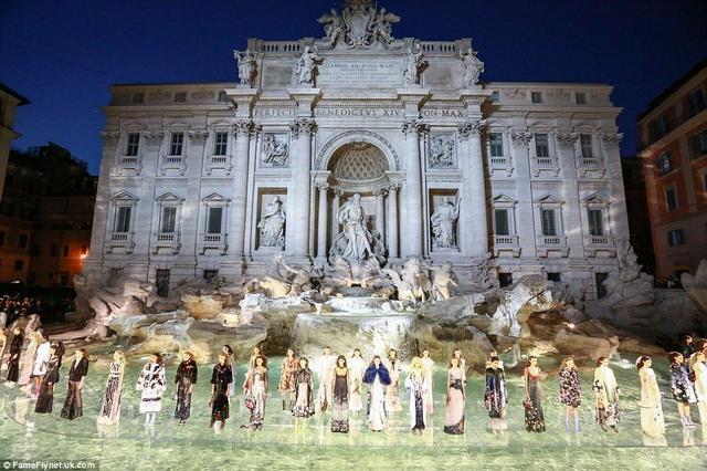 2016年7月,Fendi在特莱维许愿池喷泉举办了一场庆祝品牌90周年的高定皮草时装秀,当日,由Lagerfeld设计的由树脂玻璃做的T台,搭建在喷泉池上,当红新生代超模Kendall Jenner带领一众长队超模走过,就像是轻盈地走在水面上一般。来参加此次大秀的,有专程搭私人飞机从法国巴黎高定时装秀场赶来的国际时装编辑,有像Kate Hudson这样的名人坐在秀场头排,还有跃跃欲试的家庭主妇从她们的窗子俯视整个广场,现场的壮观另每个人为之惊呆。