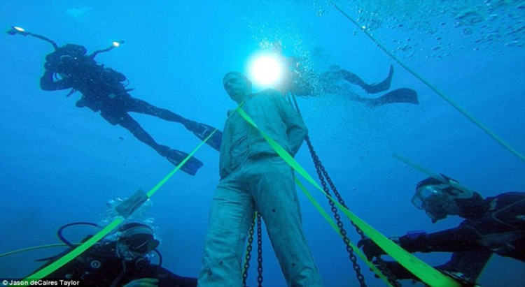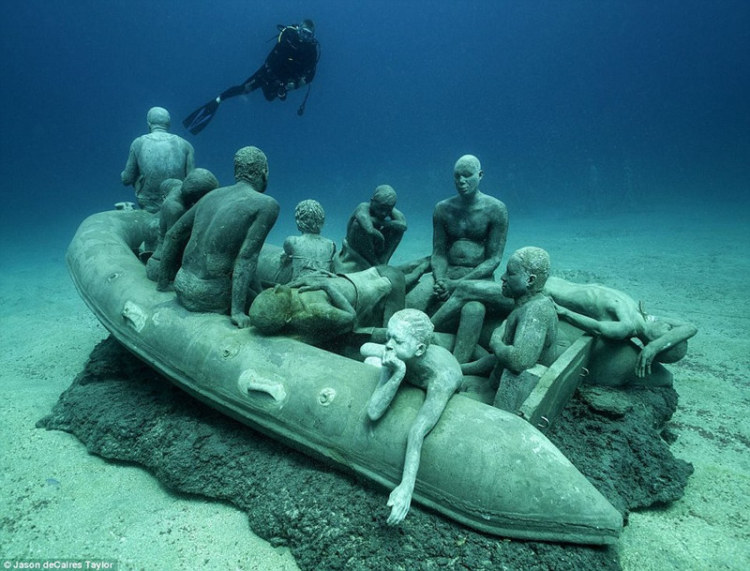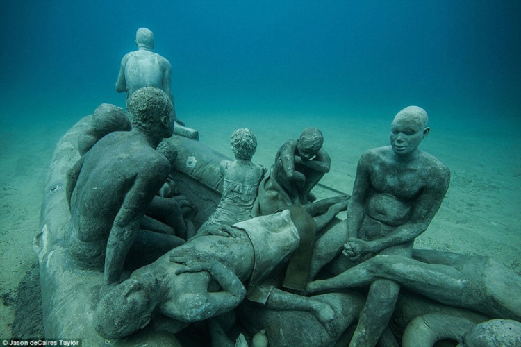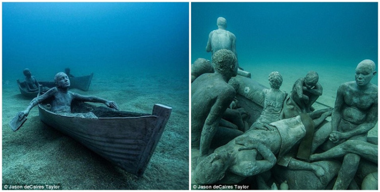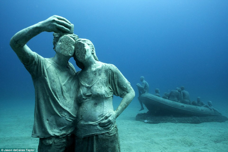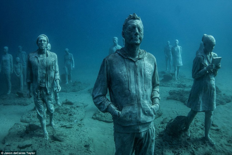 馆名叫大西洋博物馆,位于西班牙拉萨罗特岛旁,共有12个绵延水下的雕塑安装点,由设计师Jason deCaires Taylor花费3年打造而成。