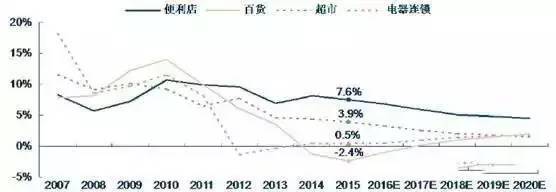 今年8月的调查也显示,近四成的便利店销售总额同比增长10%以上,2016年保持良好发展态势。据相关预计,2016-2020年便利店业态销售额增速在8%~10%,增速显著高于其他业态。