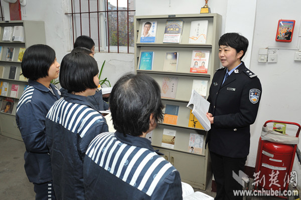 林雪飞监区长在监区学习室,与服刑人员读书交流,教育她们要学法、守法,认罪服法。通讯员 杨民胜 摄