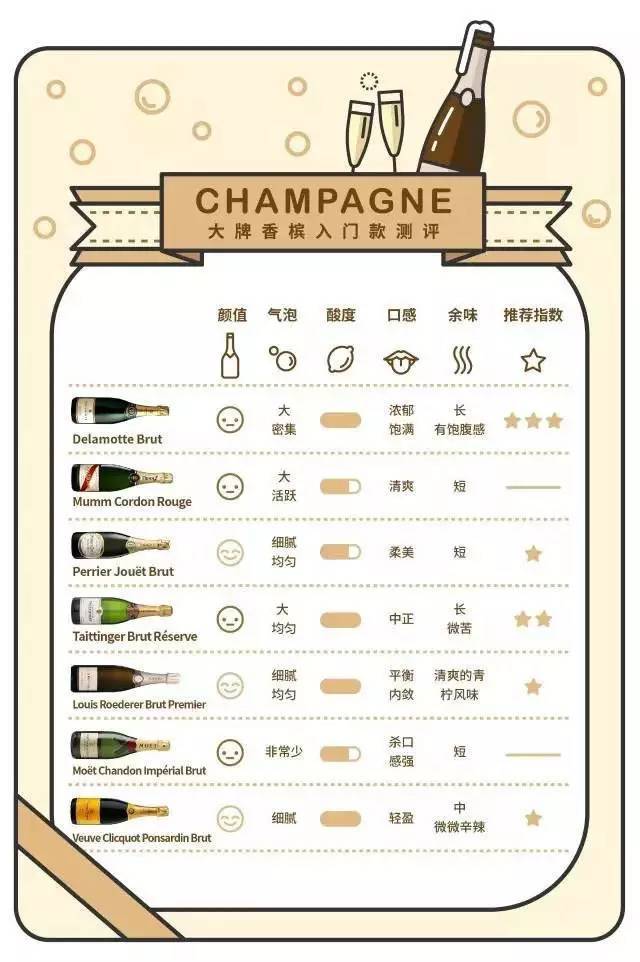 综合这六点,一支在各方面表现优异的香槟,平衡度好,就能拿到比较高的分数。我们综合了专家和群众们的意见,按照推荐指数给这些香槟排了个名。