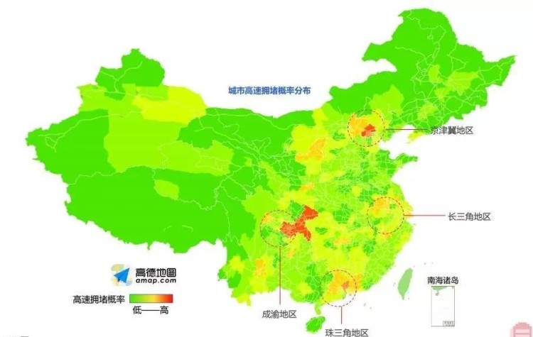 ★ 最堵地区:京津冀、长三角及珠三角、成渝地区