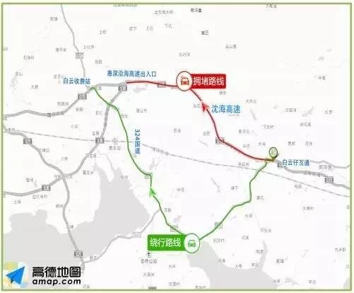 预计春节后沈海、京港澳高速(石湖特大桥-广汕公路出入口)易拥堵。建议选择如下绕行路线: