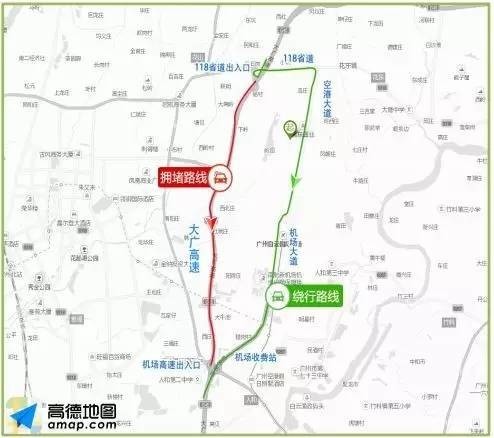 【绕行路线】:从118省道出入口下高速,沿118省道-空港大道-机场大道行驶,在机场收费站上高速。