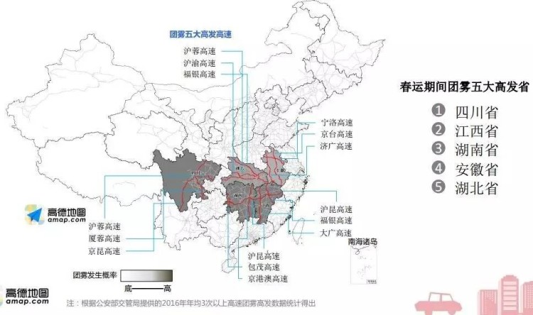 (▲春运全国高速“团雾”高发热力图)
