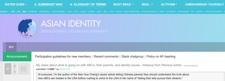 近日美国最大的华人论坛文学城出现了一篇帖子引发网友热议,作者ArmorUSA7岁便随父母移民美国,他发帖的目的是为了告诉和他一样的华裔二代美国移民的中国父母,他们在打着让他们的子女追逐梦想的旗号匆忙来到美国前,应该充分了解出生在美国的华人在美国是如何被对待的这一现实。帖子发出后很快被转载到其他华人论坛上,包括美国本土最大的在线论坛Reddit,迅速引起华裔二代移民的共鸣。