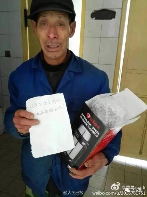 1、温暖!清洁工老人收匿名礼物:爷爷,天冷了用这个保温杯喝水吧近日,山东潍坊七中一位教学楼清洁工老人收到了一份匿名礼物,礼物中留有字条:“爷爷天冷了用这个保温杯喝水吧!”清洁工老人十分感动,眼含泪花,拉住一位老师拍照转达谢意。为善良的学生点赞,愿爱充满世界!(@人民日报)