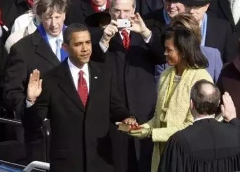 在2008年的总统就职日,时年47岁的奥巴马身穿蓝黑西装,打着红色领带。他将手放在林肯用过的圣经上,面向三公里以外的林肯纪念堂,誓言将竭尽所能保护、遵守和捍卫美国宪法,向第一个解放了黑奴的美国总统致敬。