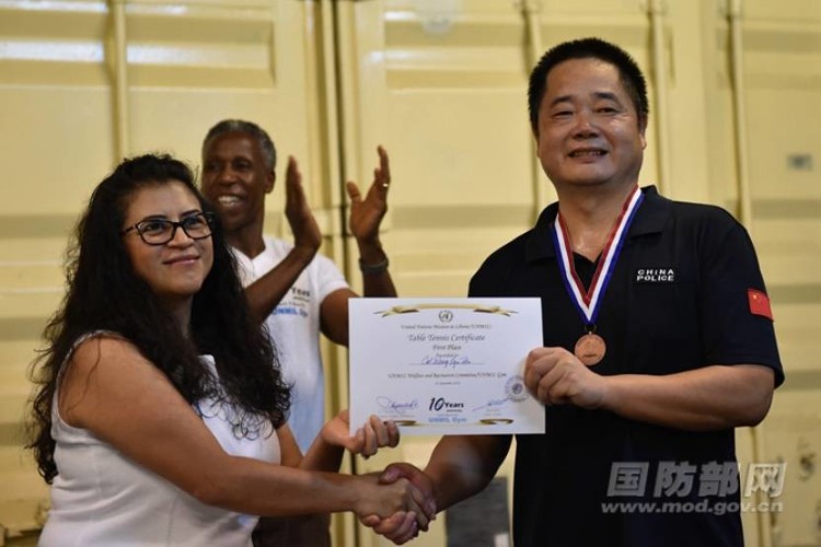 去年9月,联合国驻利比里亚特派团组织乒乓球比赛,这怎能少了我们中国。中国防暴队在内部层层选拔,派出4名队员参赛。他们凭借着精湛娴熟的技术和良好的心理素质,一路过关斩将,最终取得了冠军,展现了维和警察的风采。