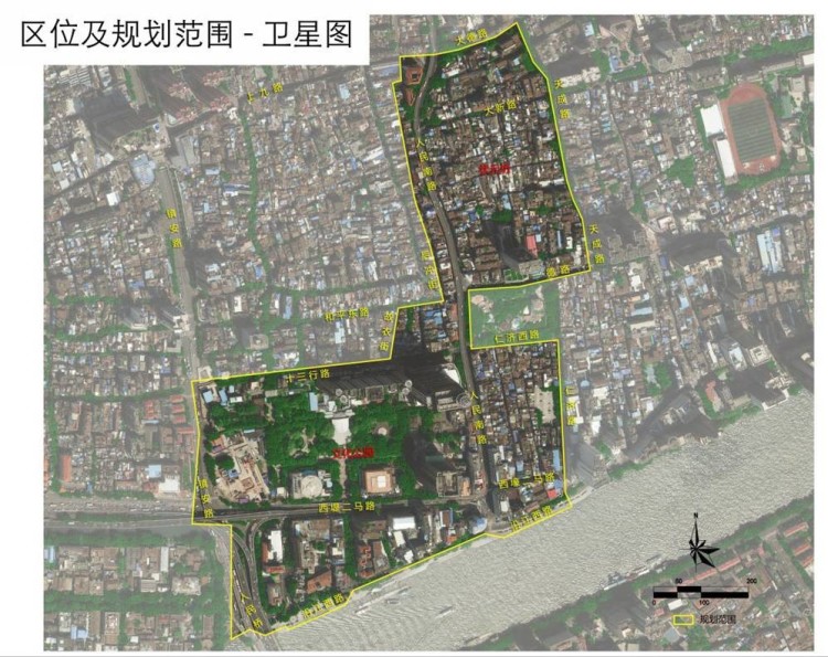 规划范围:以人民南路为主干,南至珠江岸线,北至上下九路口,西至后冲街,经故衣巷,十三行路,至康王路、人民桥,东至天成路、仁济路。总面积39.42公顷。