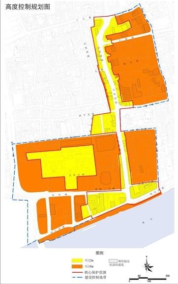 新建、扩建、危房原址重建的建设工程建筑高度控制在18米以下,其体量、色彩、材质等应与历史风貌协调。对大新路、大德路等骑楼街的建筑,为保护骑楼街的建筑界面和历史风貌,可按具有合法产权的原有房屋的建筑高度进行危房原址重建,但本区域内的改建和修缮建设工程,不得增加具有合法产权的原有房屋的建筑高度。