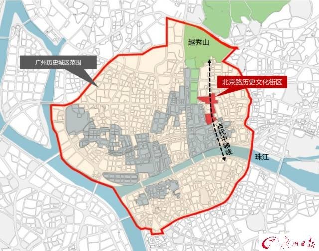 作为广州城建的源点,北京路历史文化街区浓缩了广州二千多年不断代、不迁址的历史底蕴和文化特质。广州自秦汉开始,建城始于北京路一带。