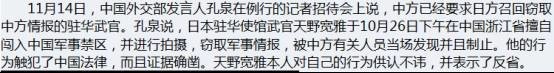 2002年,日本驻华武官天野宽雅更是亲自上阵,最后在中国的要求下被召回。众所周知,大使馆武官负有搜集驻在国军事情报的重要任务,但搜集手段要符合驻在国法律,而日本武官经常多次未经允许,深入中国军事基地搜集情报。