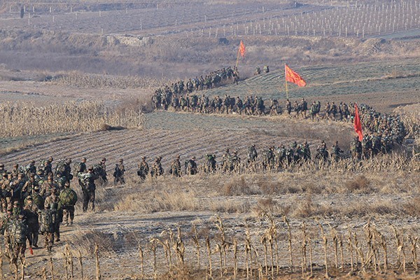经过一上午的急行军,官兵们在此刻进行休整。刘俊辉 摄