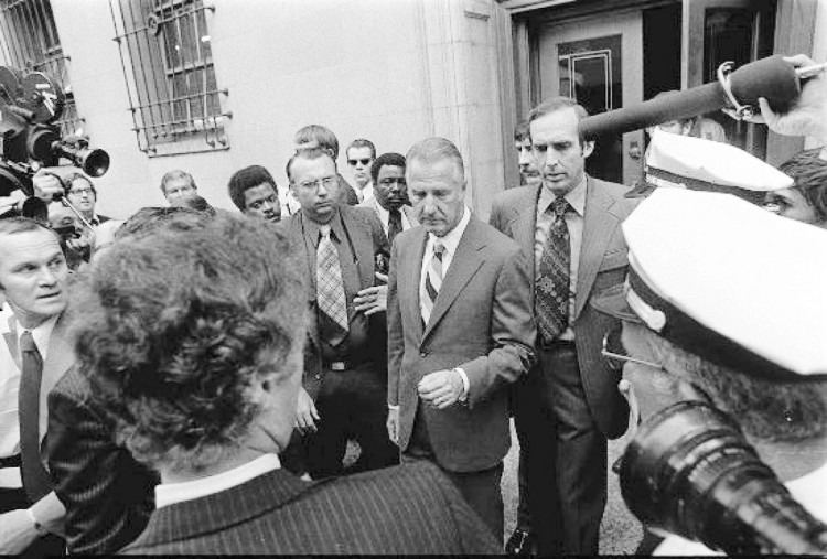 1973年4月,当水门事件开始浮出水面时,盖洛普民意调查显示很多选民都支持副总统斯皮罗·阿格纽继任总统。没想到的是,阿格纽竟先于尼克松总统落马。1973年夏秋之际,美国政坛又一起丑闻被揭露出来,那就是巴尔的摩政治腐败事件。巴尔的摩是马里兰州最大的城市,这座城市在20世纪中期迅速扩大,在建造公路、住宅、桥梁、排水系统和商业中心的过程中,涉及很多不动产交易活动。在不动产交易活动中,形成了一系列纠缠不清的交易网,一方是形形色色的开拓者与承包商,另一方是众多地方官,这两伙人串通一气,通过投机和敲诈勒索牟取暴利。早在1972年底,美国司法部负责马里兰州的检察官就已找到相关不法行为的足够证据,于是组成了陪审团,试图顺藤摸瓜查到最大的“老虎”。经过细致调查,“大老虎”终于被查出,原来竟是现任副总统阿格纽。陪审团掌握的证据显示,阿格纽从1967年-1969年马里兰州州长任期直至1969年-1973年初的副总统第一个任期内,不断收受酬金和礼品,他收取的贿金超过10万美元。