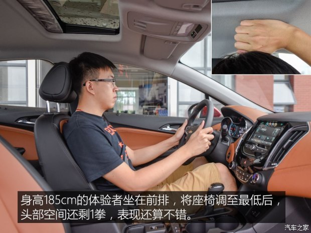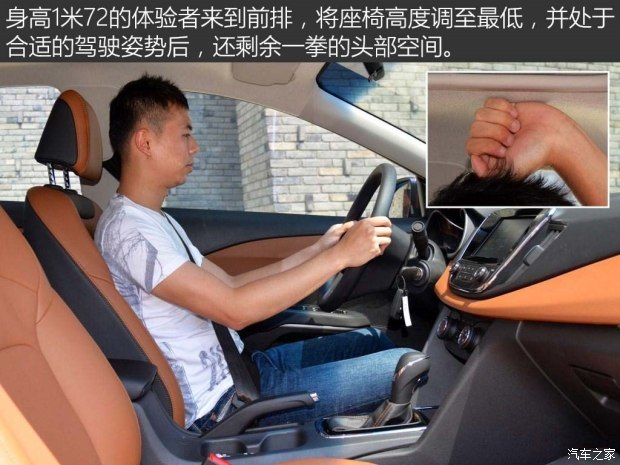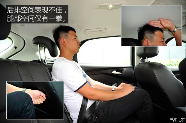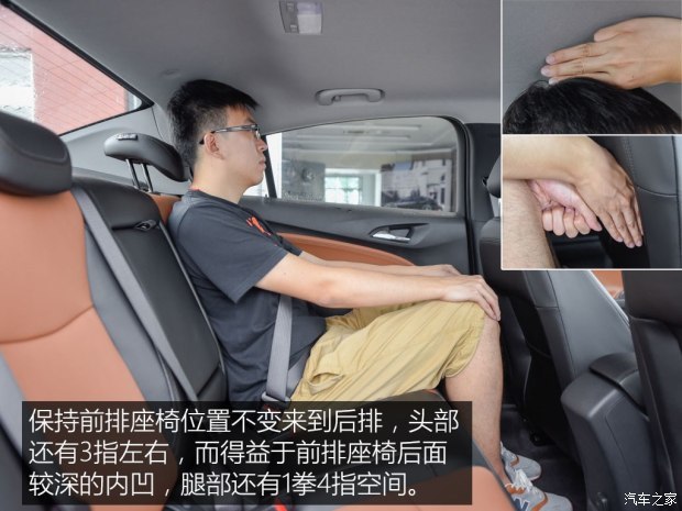 科沃兹的乘坐空间表现符合预期,虽然1.72的体验者可以获得两拳多的后排腿部空间,但是身高再高一些的朋友乘坐时,体验上就要打些折扣了,所以综合两位体验者的身高来看的话,还是科鲁兹的表现要更好一些。