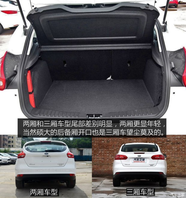 后备厢方面,福克斯在常规状态下的容积为356升/530升(两厢/三厢),规整程度都不错,三厢车型在同级别车型中表现突出。而过作为稍低定位车型的福睿斯,容积为448升,表现中规中矩,不过后排座椅放倒功能只有高配车型才会有,并且放倒形式为整体放倒。