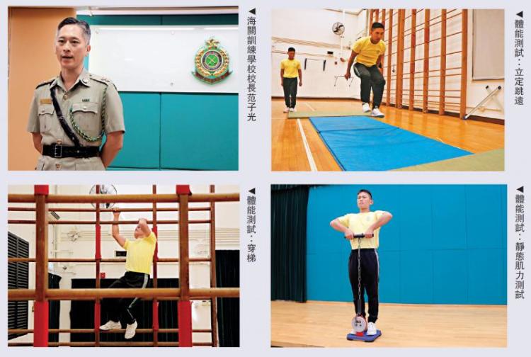 考生须接受体能测验,测验项目包括:立定跳远、穿梯、静态肌力测试及800米跑。考生必须于每个测验项目中最少获得一分及于四个测验项目中合共获得十二分或以上才算体能合格。